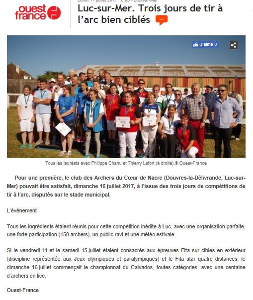 à l'honneur sur Ouest France du 14 juillet 2017.
